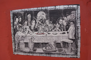 Depictions of the Last Supper hang in many a Mexican kitchen. This one, involving some politicians and a representative of the Mexican telephone monopoly, Telmex, was plastered on the side of a building in downtown Oaxaca City.